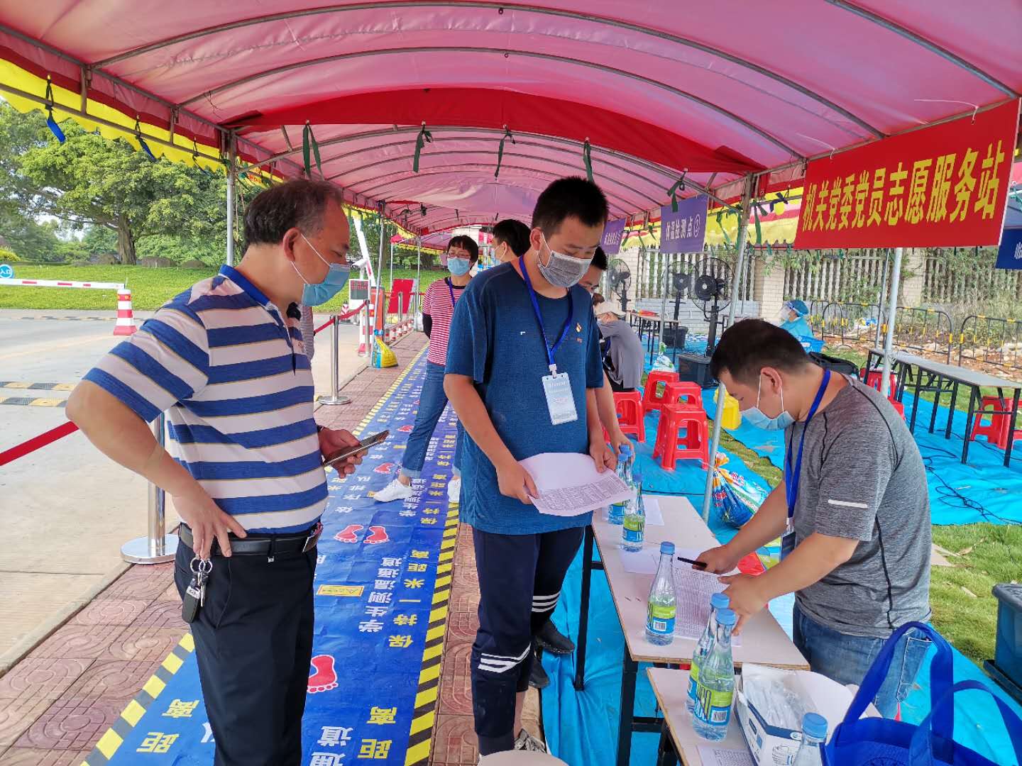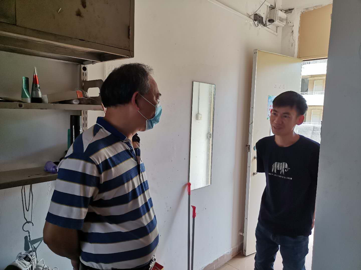 党委书记邓伟强带领党政办工作人员和研究生辅导员到研究生宿舍和校门口检查研究生返校情况。