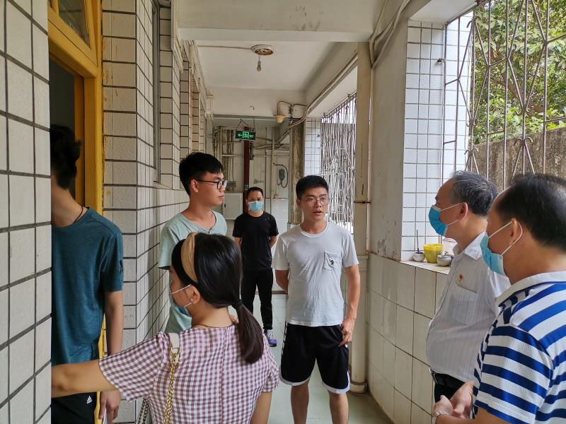 党委书记邓伟强、副书记陈嘉文带领学院党政办主任、辅导员到学生宿舍首先看望刚刚返校的2020届毕业生。