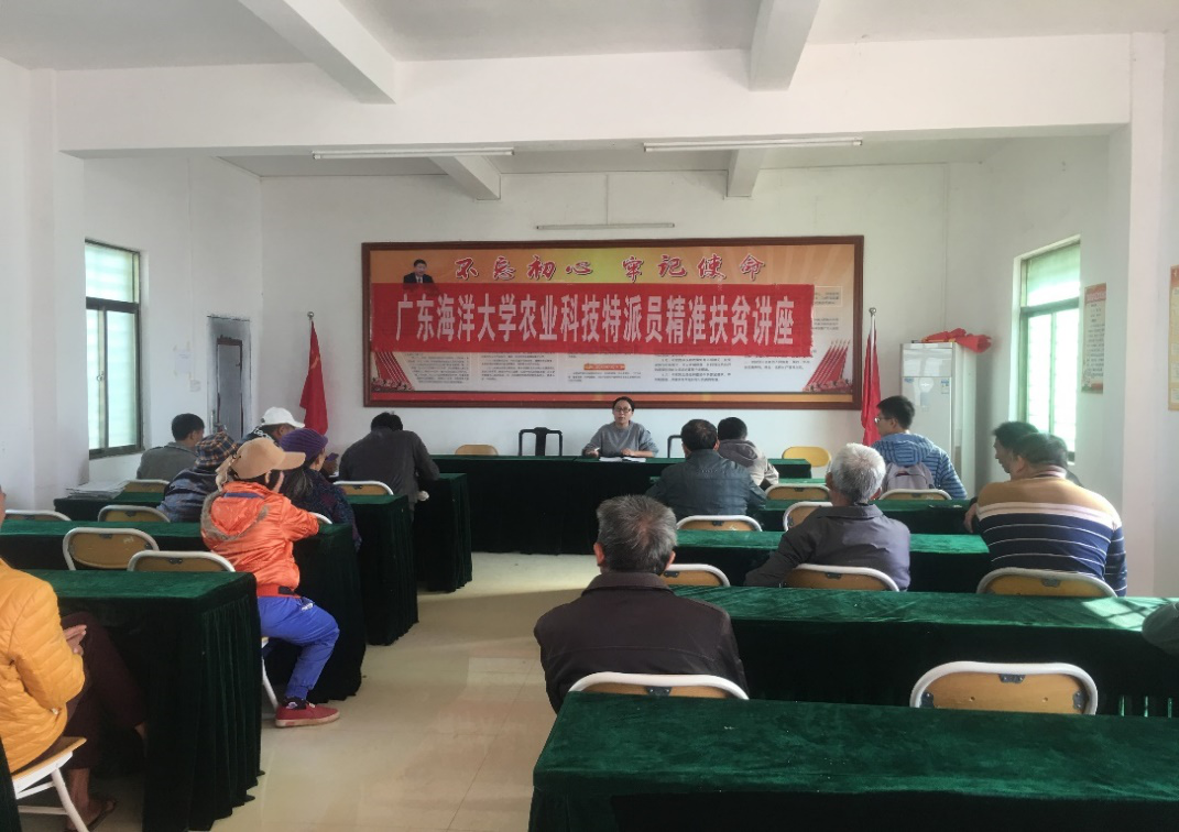 针对湖光镇赤忏村因前期养猪出了问题,为他们紧急制定了养猪消毒防护措施,以电子版形式发给驻村干部并开展知识讲座3次,针对养殖户,讲解病原菌传播危害、防护措施、养殖动物疫苗安排、药物使用与处理等,培训人员70人次左右。无偿发放给贫困户鸡苗, 通过鸡蛋-鸡苗模式,易于提高贫困户收入,改善生活质量,进一步为脱贫做贡献。