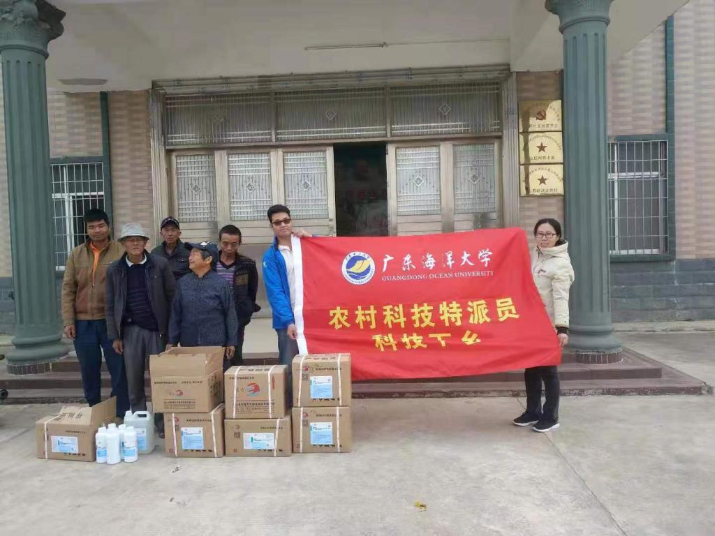 农村科技特派员在东山镇调文村发放消毒药品