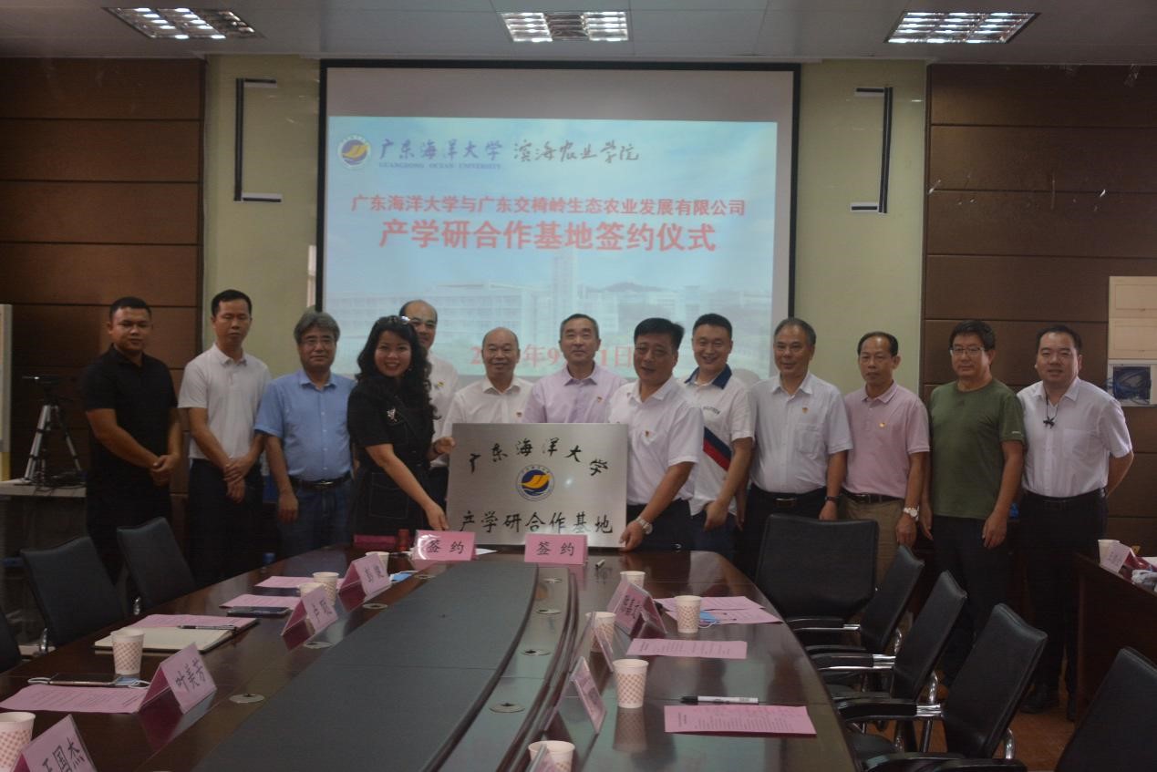 党委书记曹俊明教授、科技处处长鲁义善教授,湛江市农业农村局发展规划与乡村产业发展科科长王国杰、湛江市麻章区农业农村与水务局副局长卢聪、湛江市麻章区湖光镇党委副书记邓利,广东交椅岭生态农业发展有限公司总经理叶美芳、副总经彭健、副总经理彭越以及av漫画