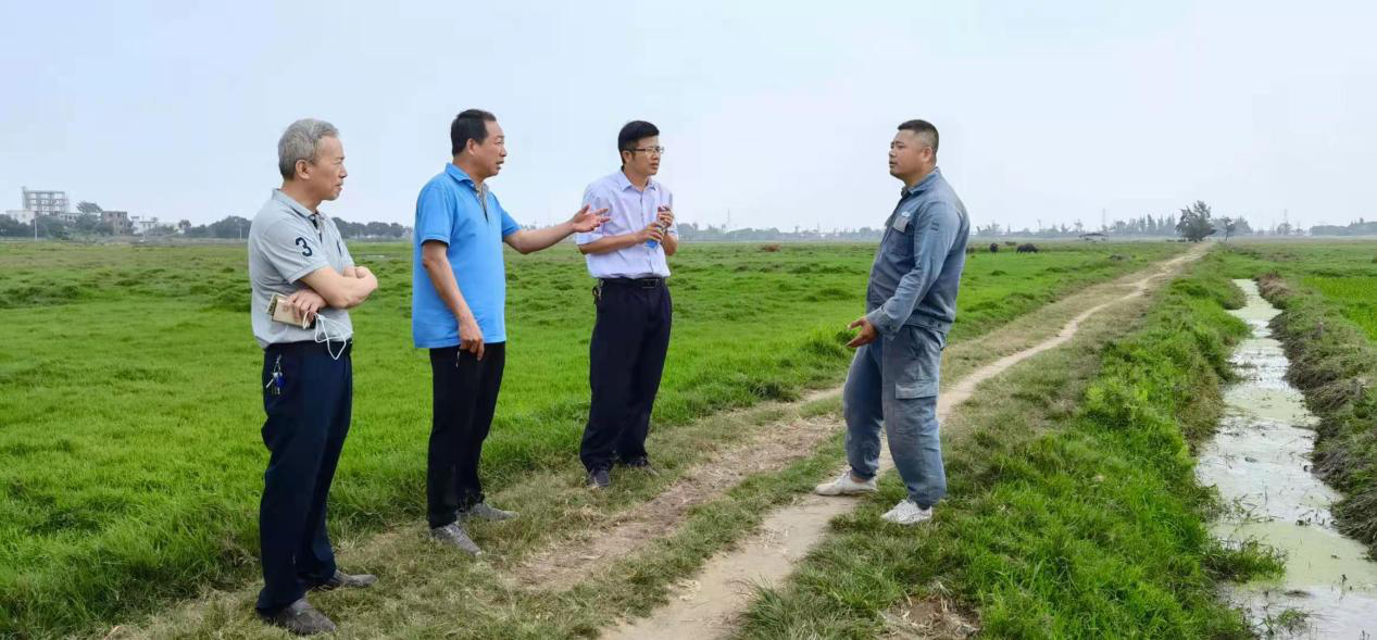 教授周鸿凯到东海岛的东山镇、东简镇、民安镇,对盐渍农田情况进行调研,指导撂荒盐渍农田垦复工作。湛江市经开区农业事务局办公室主任唐慎、湛江市经开区农业综合技术推广管理中心副主任杨志丹、湛江骐兴农业发展有限公司总经理陈伟雄陪同调研。