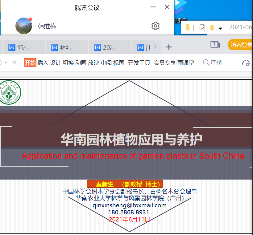 风景园林学科邀请,6月12日上午,中国林学会树木学分会副秘书长、中国林学会古树名木分会理事、华南农业大学林学专业主任秦新生博士、副教授,通过腾讯会议为我校师生作《华南园林植物应用与养护》专题线上学术报告,报告由av漫画