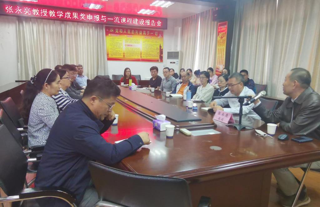 部分师生参与了本次活动。张永亮教授分享了自己申报国家级教学成果奖经验,提出国家级教学成果奖培育需要提前谋划、顶层设计、组织实施和凝练提升等关键步骤,成果奖需秉承坚持创新改革发展为引领、聚焦人才培养与教育教学体制改革。报告结束后,与会教师与张永亮教授进行了热烈的交流。本次报告会加深了学院教师对教学成果奖申报和一流课程建设内涵的了解,对教研水平提升起到了良好的促进作用。