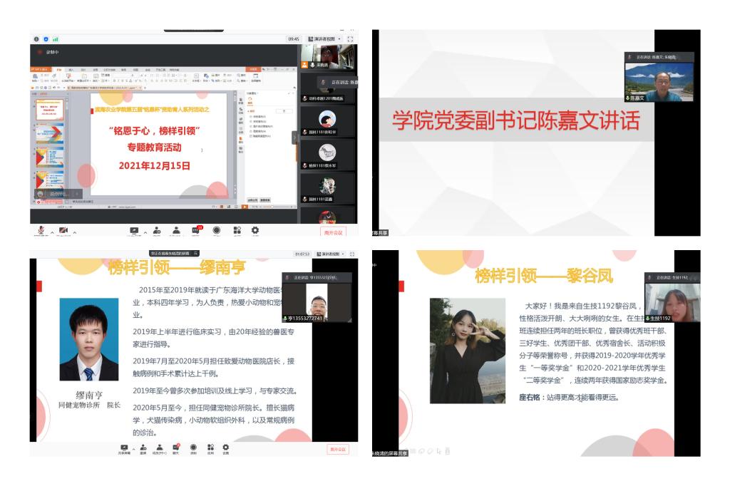 “铭恩于心、榜样引领”专题教育活动于12月15日晚通过腾讯会议举行,学院党委副书记陈嘉文、各系辅导员以及学院全体受资助同学参加。活动第一部分是由辅导员朱晓清讲解国家资助政策和av漫画