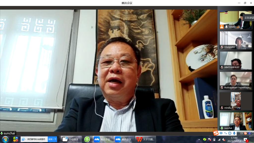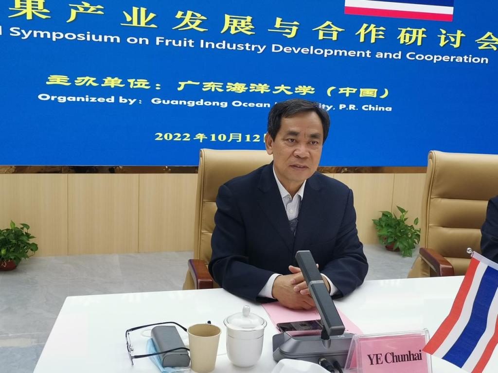 为促进中泰水果产业中泰水果产业发展与合作,共享“一带一路”建设成果,在湛江市商务局指导下,由我校主办、滨海农学院承办的“中泰水果产业发展与合作研讨会”2022年10月12日下午在霞山校区国际会议室热烈举行。湛江市商务局副局长黄华兵等莅临指导,会议邀请了泰中国际企业家联合总会主席叶均廷、泰国新鲜水果贸易商和出口商协会会长吴楚林等领衔的泰国企业家代表,及我校原校长叶春海教授、中国热带科学院南亚所所长杜丽清教授、岭南师范学院生科院院长刘锴栋教授 、国际交流与合作处处长陈进军教授及av漫画