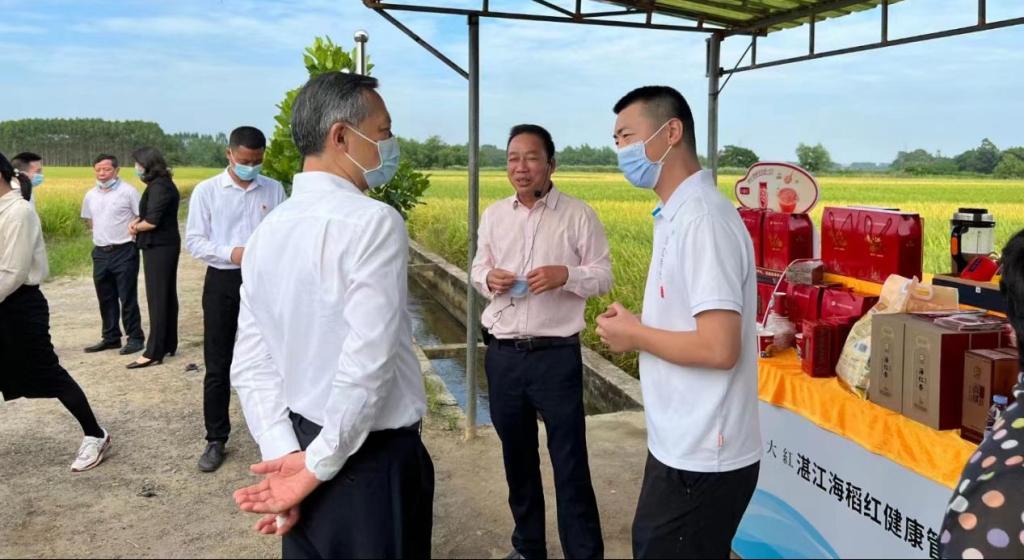 科研成果新一代海水稻——海红香稻培育过程、创建“海大红”品牌成果转化的产业模式、惠农益农、助力乡村振兴等方面所发挥的作用。听取汇报后,兴趣甚浓,张硕辅副主任等领导咨询了海水稻在盐碱地种植与改良作用、抗虫抗病能力、适应性等问题。得知海水稻种植3-5年可将盐碱地改造成良田并适用于种植一般作物,同时具有较强的抗虫抗病抗旱能力,特别是观看了在徐闻旱地种植海水稻的图片资料后,给予了高度赞赏,希望av漫画