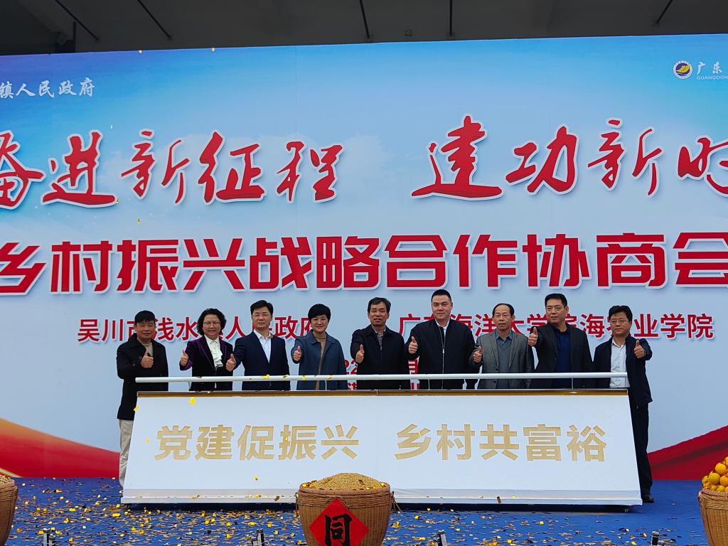 党委副书记陈嘉文、副院长马驿教授及相关老师一行6人参加了会议,吴川市委副书记(代市长)刘伟、市委常委(副市长)谭斐、吴川市乡村振兴局局长林明、浅水镇党委书记叶剑平、浅水镇党委副书记(镇长)郭卓明、浅水镇人大主席柯亚周出席了会议。