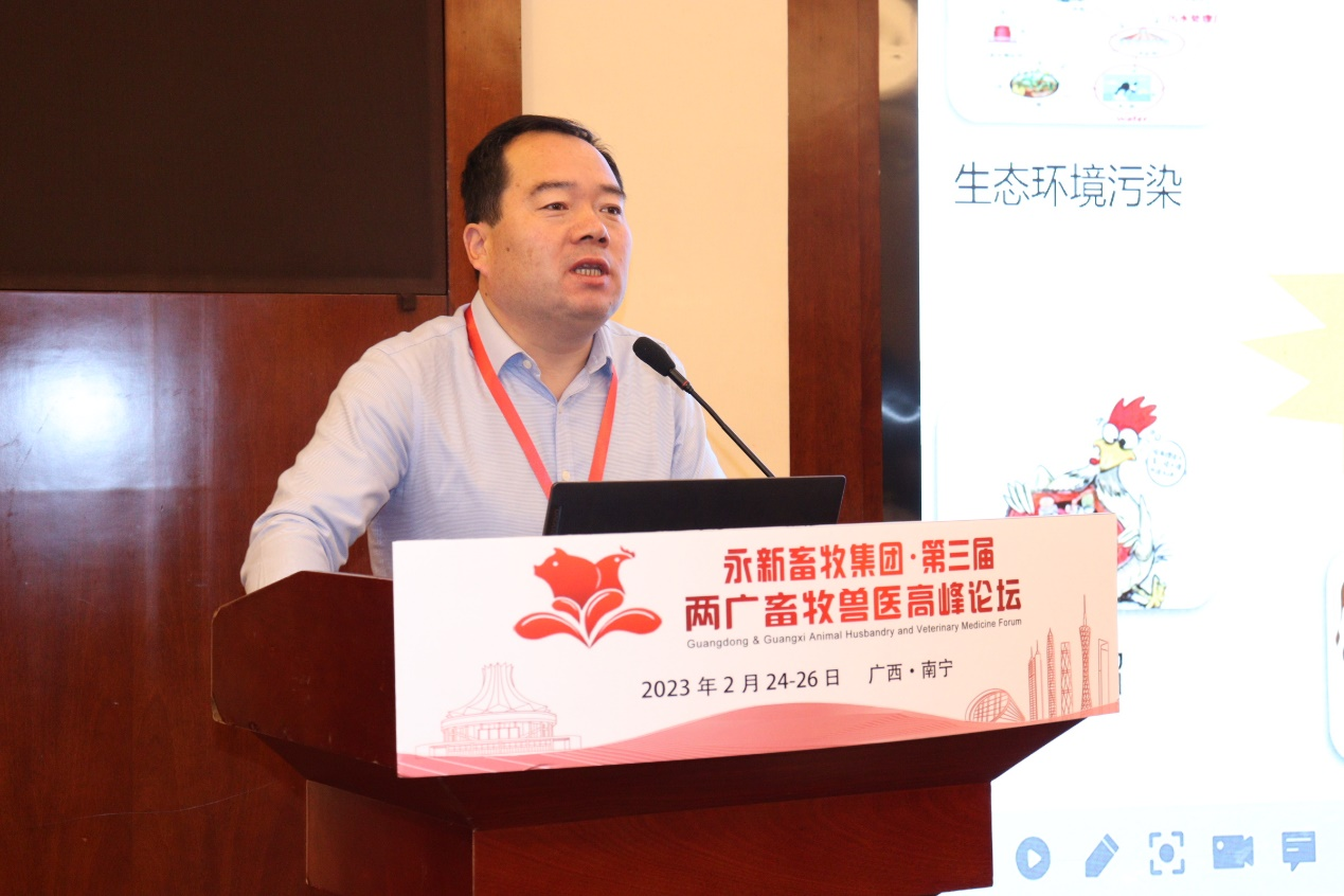 2023年2月24-26日,由广东省畜牧兽医学会和广西畜牧兽医学会联合主办,广西大学和广州奥盛农业服务有限公司承办的“第三届两广畜牧兽医高峰论坛”在南宁沃顿国际酒店成功举办。本届论坛以“科技引领畜牧、创新发展行业”为主题,聚焦生猪、家禽产业科技创新和粤桂协作新发展,围绕疾病防控、种业振兴、健康养殖及市场培育等多维度研讨两广畜牧业面临的共同挑战和解决方案,促进行业健康发展。来自河南农业大学、华南农业大学、广西大学、中国农业科学院哈尔滨兽医研究所、广东省农业科学院及江苏省农业科学院等知名高校和科研院所的专家学者及行业从业人员约400人参加了本次盛会。论坛开幕式由广西大学副校长罗廷荣主持,中国工程院院士张改平教授、四川农业大学校长陈代文教授及中国农科院北京畜牧兽医研究所赵桂苹研究员做大会报告。