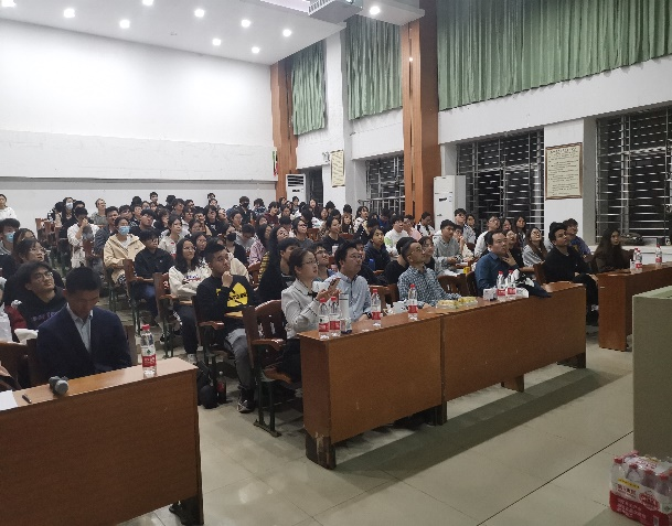 动物医学系巨向红、姚秋成、王广旭等教师,及动物医学专业2020、2021及2022级近400名在校学生参加了本次交流活动。巨向红教授向大家详细介绍了我校动物医学专业的发展历史及专业特色,重点强调了“兽医学业/职业规划”的重要性,并对宣讲团的宣讲活动给予了高度评价。交流活动于晚上7点半开始,在湖光校区兴农楼109进行,活动气氛热烈,讲师报告慷慨激昂,学生互动积极踊跃,活动持续了近三个小时。最后,校企双方进一步对学生就业、合作发展等进行了深入交流。