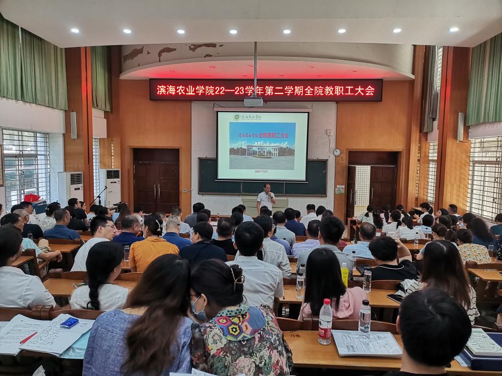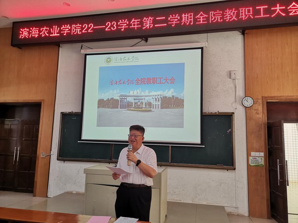 在兴农楼109室召开本学期假前全院教职工大会。会议由学院党委副书记陈嘉文主持。