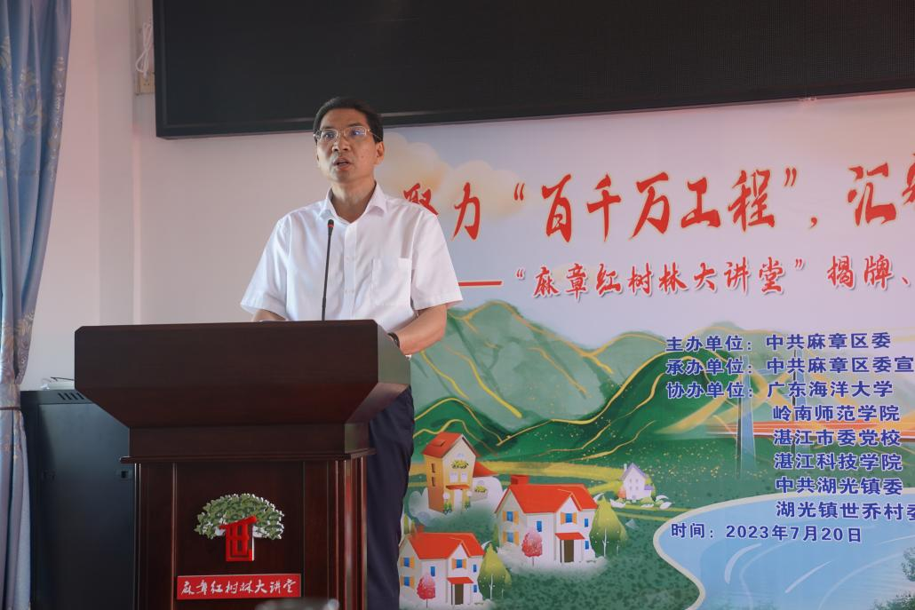 7月20日下午,麻章区“红树林大讲堂”在世乔村举行成立活动,活动由中共麻章区委主办,我校与岭南师范学院、湛江市委党校和湛江科技学院等协办。我校党委副书记林晓敏、科技处处长颜云榕及av漫画