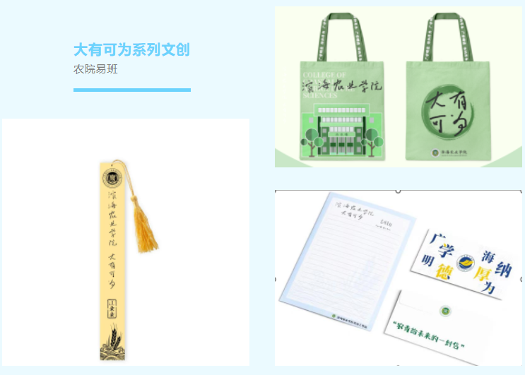 为2023级同学们准备的文创大礼包更是新颖别致。迎新大礼包以学院主题色、学院logo和学院特色为元素,结合校训等内容,由农院易班自主设计。既有实用且美观的书签与帆布袋,也有汇集了大学学习和生活攻略的“农青给未来的一封信”。通过精心准备的大礼包,农院向新一届农院青年表达最诚挚的欢迎!希望2023级新生们都能在农院向你敞开的光华灿烂中行而不辍,笃行致远,常怀打开书院礼包时对未知的渴望和对生活的热爱。