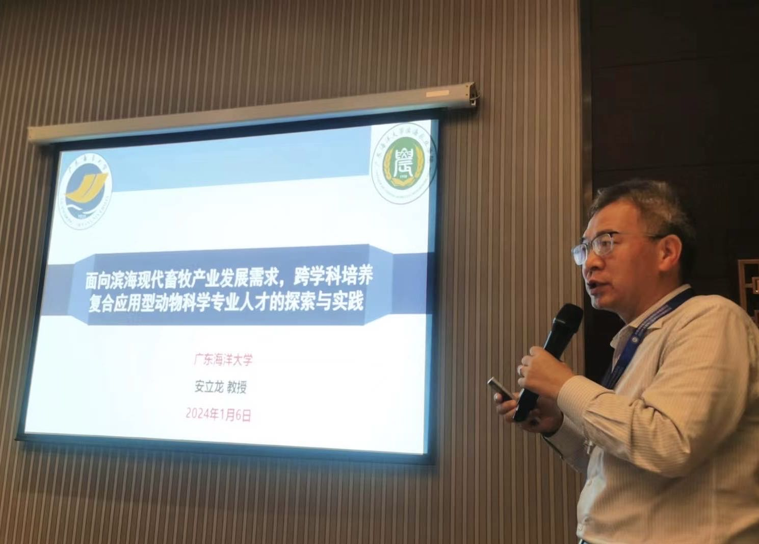 我校教育部新农科改革与实践项目负责人安立龙教授、动物科学系系副主任周光现出席了本次论坛。安立龙教授应邀作了题为“面向滨海现代畜牧产业发展需求,跨学科培养复合应用型动物科学专业人才的探索与实践”的大会报告。以我校动物科学专业为例,介绍了跨学科培养“一专多能”复合应用型人才的探索与实践。