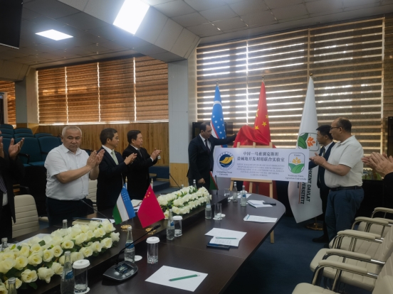 院长马驿在塔什干国立农业大学会场为联合实验室揭牌。乌兹别克斯坦农业部科学、创新和教育发展司司长托赫塔穆罗德·阿塔库洛夫先生,中国驻乌兹别克斯坦大使馆阳显仁先生,农业与土壤改良教研室项目负责人乌斯蒙-诺尔库洛夫教授,我校科技部副部长巨向红、副院长沈雪峰、耐盐碱水稻技术创新中心华南中心副主任江行玉、水产学院教授刘建勇等现场见证。
