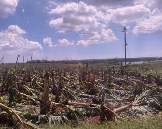 在菠萝种植区,专家团队发现大部分植株受损较轻,有些植株略有倾斜,迎风面叶片摩擦严重,催花期需推迟,有些新定植的植株被拔起。在香蕉种植区发现,许多香蕉树被拦腰吹倒或在生长点断裂,果实受损严重,大部分植株无法挽救。甘蔗种植区则是整体平铺,部分区域遭受严重水浸。此外,番木瓜倒伏严重,大部分果实脱落;柠檬树枝被折断或撕裂,大部分树叶脱落。有些行道树在台风前已修剪,受损较轻;未修剪的行道树则倒伏严重。