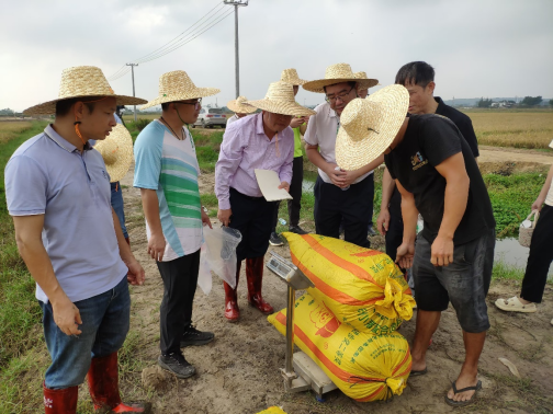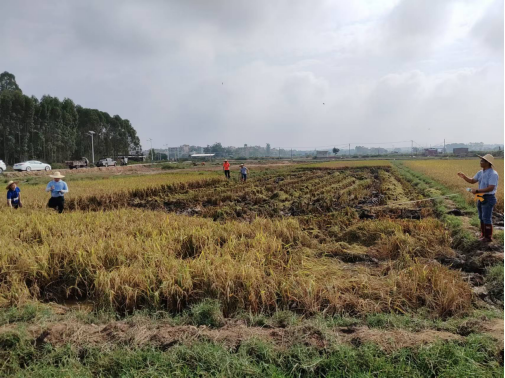 积极响应“做好盐碱地特色农业大文章”。11月17日,广东省农业农村厅组织国家杂交水稻工程技术研究中心、中国热带农业科学院、广东省农业科学院、华南农业大学和吉林农业大学等单位专家对我校牵头承担的“2024年省级乡村振兴战略专项资金农业科技发展及资源环境保护管理项目《盐碱地综合利用与改良技术研究与示范项目》”中的“盐碱地水稻种植试验示范”进行现场测产。此次测产的地点位于廉江市高桥镇红寨村滨海盐渍滩涂,此地土壤含盐量0.46%,pH值为3.8。