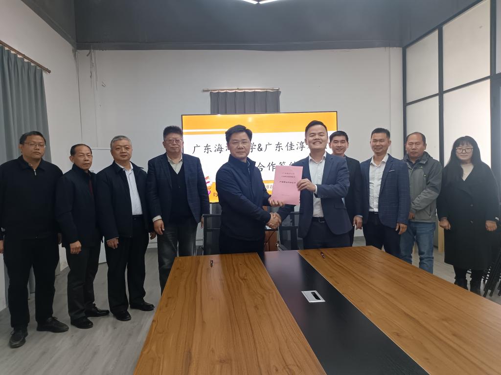 郑殿峰书记、马驿院长、王继全副书记等一行七人前往遂溪县洋青镇广东佳淳科技有限公司进行产学研合作基地签约和授牌仪式。