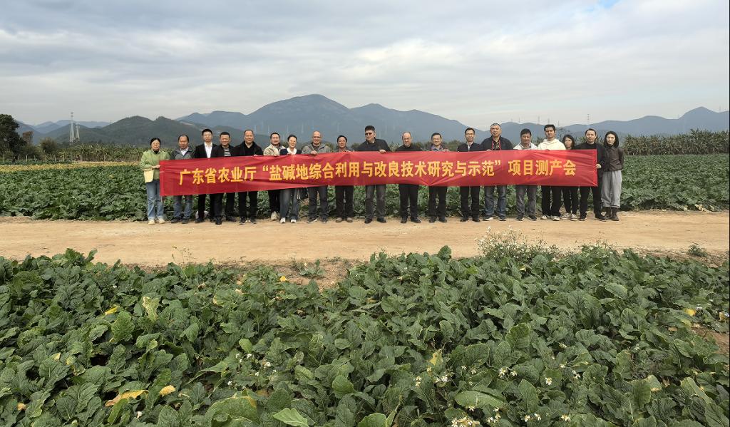国家耐盐碱技术创新中心华南中心牵头承担的2024年乡村振兴战略专项资金省级项目《盐碱地综合利用与改良技术研究与示范项目》中的“盐碱地芜菁种植试验示范”进行现场测产。此次测产地位于江门市滨海新区银湖湾荷塘围垦示范基地,土壤含盐量为0.32%,pH值7.6。