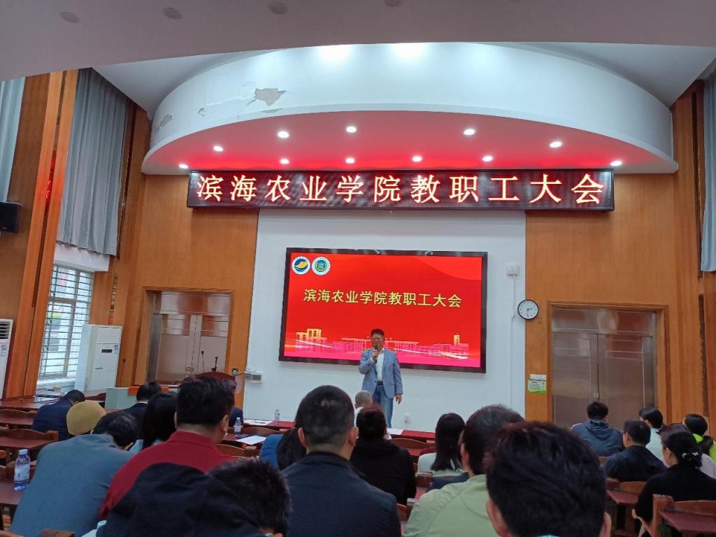 在兴农楼109多媒体室召开新学期全院教职工大会,会议由郑殿峰书记主持。