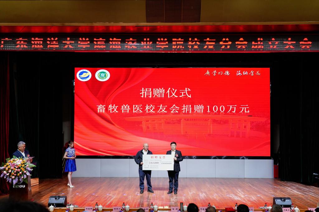 随后举行了校友和合作企业捐赠仪式,杨洲代表学校接受捐赠并颁发捐赠证书。畜牧兽医校友会捐赠100万元;曾敏、潘丽媚校友捐赠90万元;世纪云天(海南)投资集团有限公司捐赠20万元;江西新瑞丰生化股份有限公司捐赠20万元,合计总捐款达230万元。
