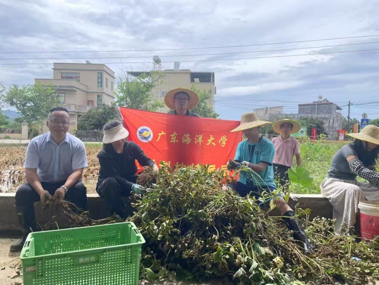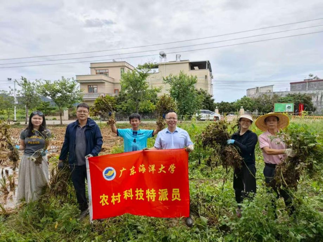 在近一年的科技帮扶过程中,团队多次往返湛江与惠东,组织专家技术座谈,深入分析撂荒地土壤理化性质,实地收集适种作物品种,创新提出“土壤改良-良种适配-轮作养地”三位一体的技术体系,使原本杂草丛生的一片撂荒地重焕生机。经过前期的土壤健康管理、病虫害绿色防控等综合技术应用,本次种植的“粤油43号”花生田间长势良好,单株结果数达30个以上,双仁果率超70%,标志着该地块的复垦复耕工作取得阶段性成效。这也是继前茬水稻、甘薯丰收后,取得的又一重要进展。