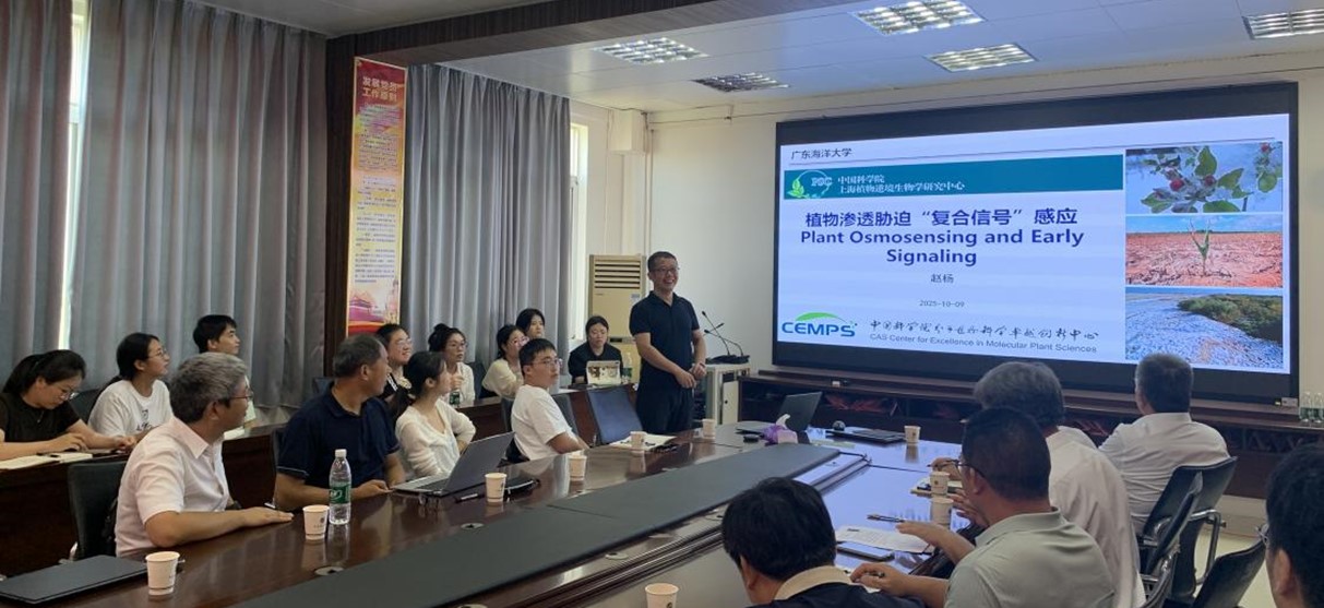 晁代印研究员以《Barriers and Carriers for Plant Nutrition and adaptation》为题,系统阐述了植物养分吸收中的“障碍-载体”机制,通过逆境作物营养获取的案例,解析了营养载体蛋白特性与环境障碍效应的关系,并分享了作物营养吸收效率改良的研究成果,为耐盐碱作物培育提供了理论支撑。赵杨研究员在《多植物渗透胁迫“复合信号”传导》报告中,重点介绍ABA、H2O2、Ca2+等信号分子的协同作用机制,深入探讨了信号传导路径及关键基因对作物抗逆性的影响,为抗逆品种的分子设计提供了新思路。张辉教授在《多基因编辑技术的开发及应用》报告中,详细讲解CRISPR-Cas9衍生技术优势,结合花卉改良与作物抗逆高产案例,展示了基因编辑技术的应用价值,并分析了技术瓶颈与未来发展方向。在互动交流环节,与会师生与三位专家围绕作物营养吸收机制、胁迫信号传导路径、基因编辑技术应用等多个前沿议题展开了深入交流。