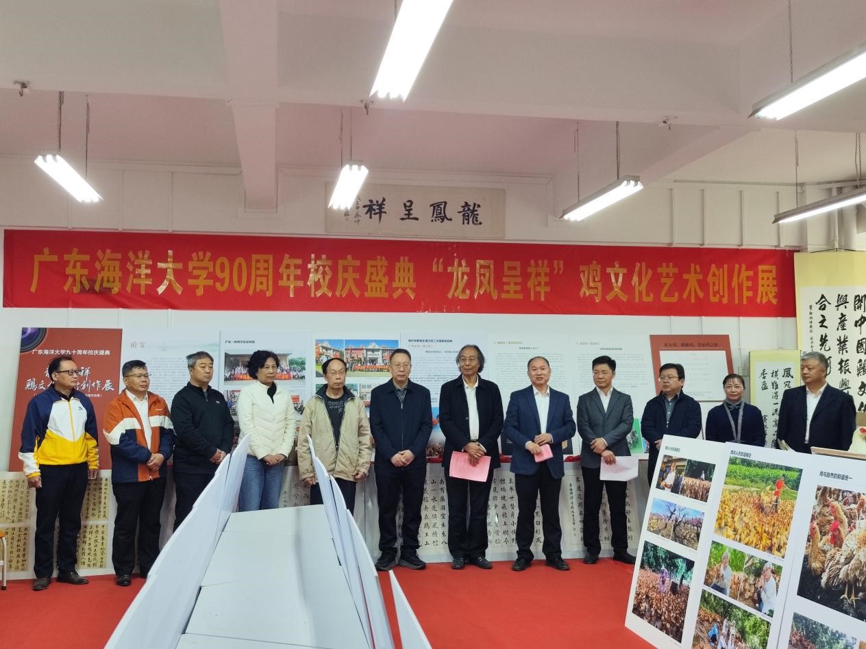 本次展览聚焦学校在珍稀鸡种资源保护与育种研究方面的突出成果,重点展示了杜炳旺教授团队培育的麒麟鸡、贵妃鸡、怀乡鸡等国家级畜禽品种。以“龙凤呈祥”为寓意,展览通过诗词、书画、摄影等多元艺术形式,生动呈现鸡种资源的文化内涵与科学价值。百余件作品由艺术家与师生深入养殖一线采风创作,体现了“把论文写在大地上”育人理念,实现了专业教育、文化传承与思政育人的有机统一。