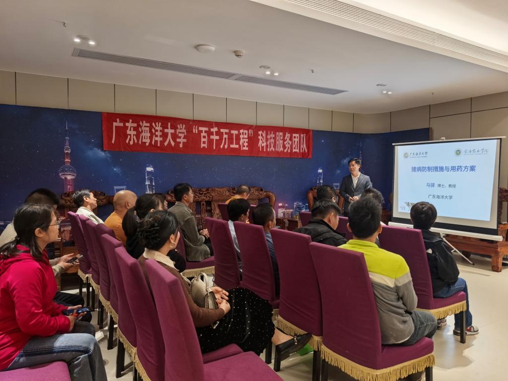 院长马驿率动物养殖与疫病防控技术团队骨干成员陈志宝、葛叶、照那木拉、康丹菊、彭金菊、文兆海等一行赴徐闻县,与徐闻县动物卫生监督所联合举办“畜禽养殖技术培训班”。活动吸引了徐闻县畜禽养殖户、农业技术人员和政府部门代表等30余人参与,旨在通过科技赋能助力乡村振兴。