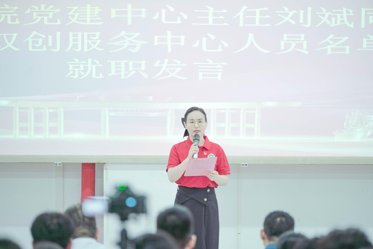 党建双创服务中心的批复》,标志着学院党建工作进入体系化、专业化发展新阶段。刘斌宣布首届中心成员名单并作履职承诺,提出将重点打造“党建+双创”特色育人模式,通过项目化运作培育政治素养与创新能力兼备的复合型人才。随后,中心副主任及各部门负责人分别就工作计划进行汇报。