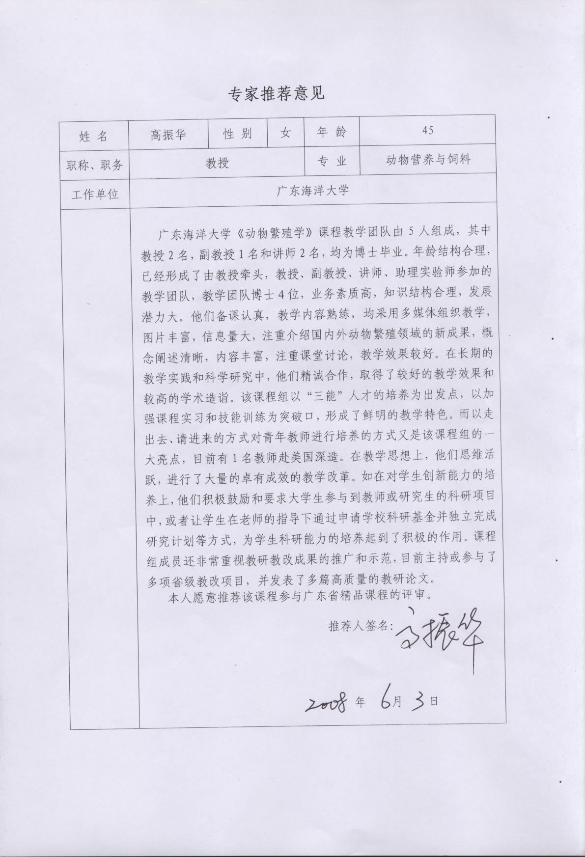 高振华教授推荐意�