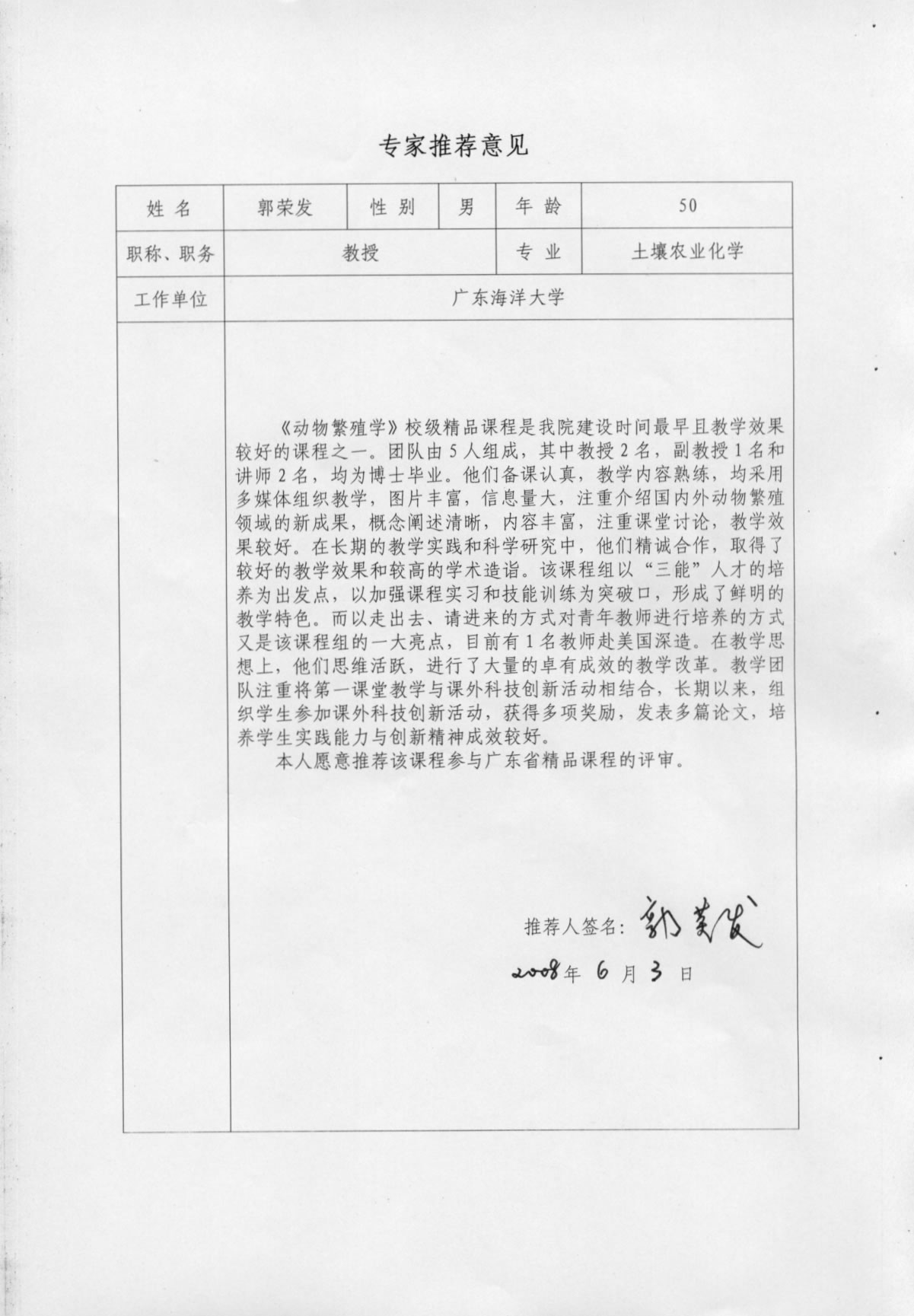 郭荣发教授推荐意�