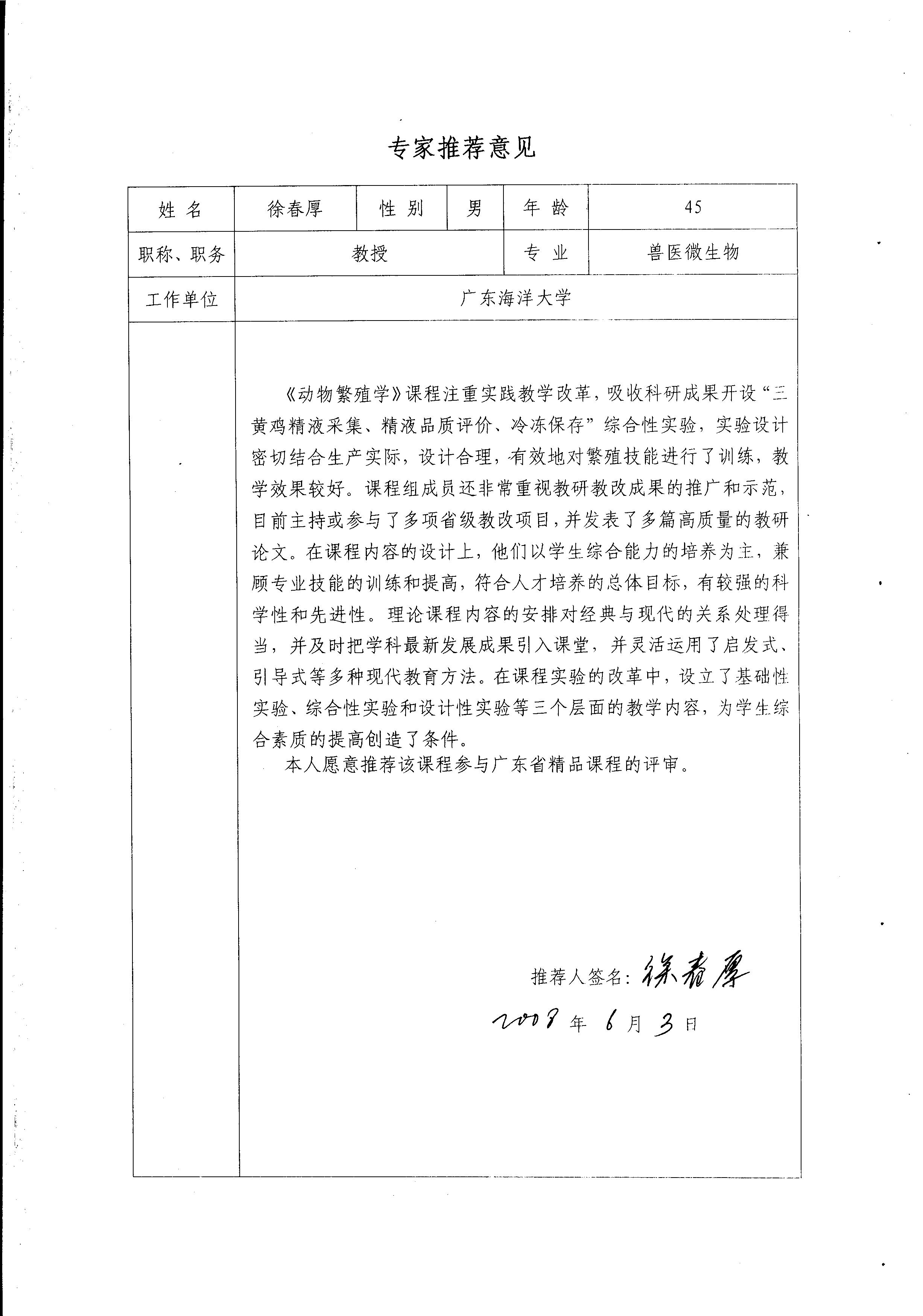 徐春厚教授推荐意�