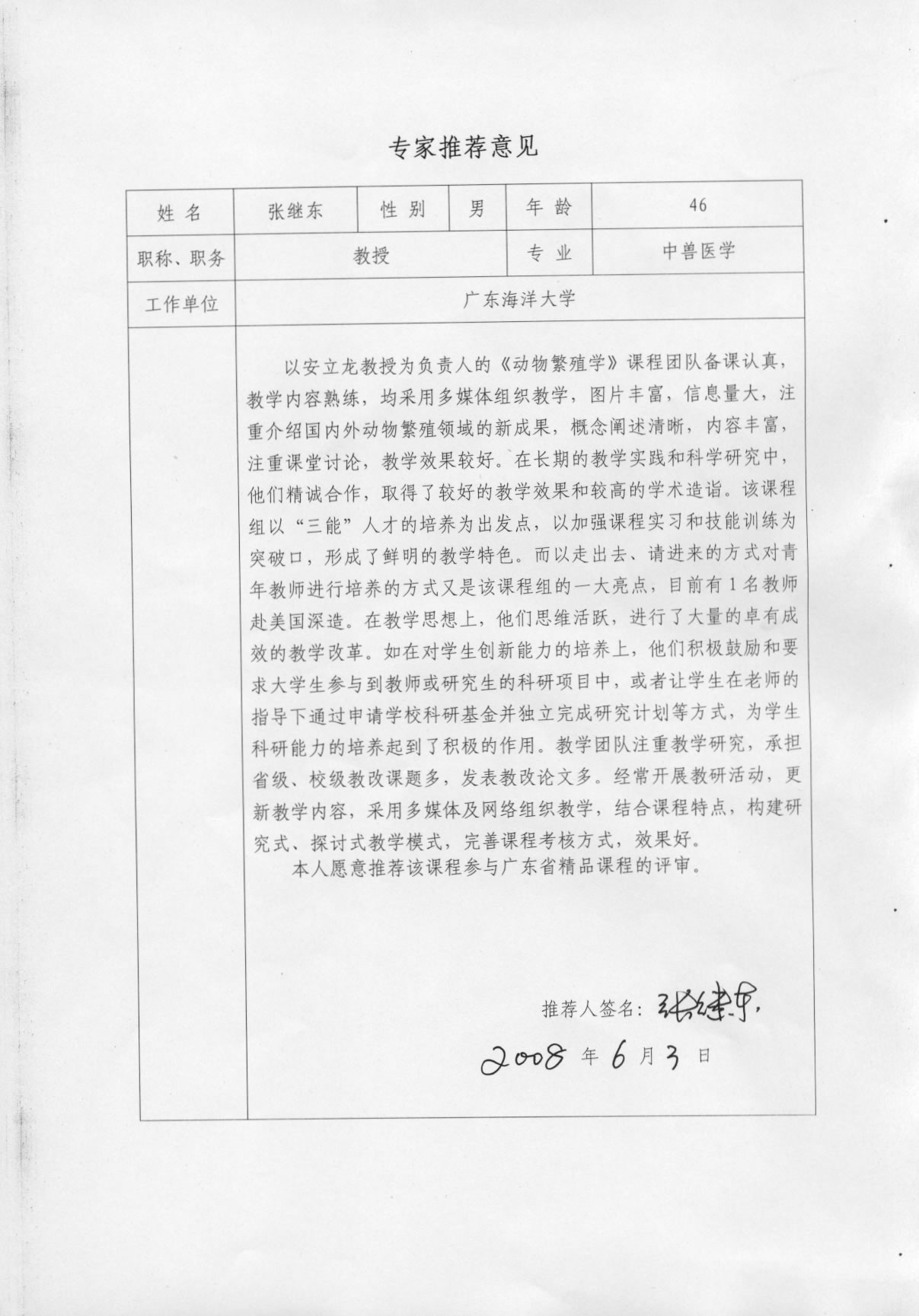 张继东教授推荐意�